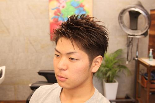 ギャラリー 福岡市南区大橋の理容室(床屋) カットハウス ヤマグチ へようこそ。 メンズショートスタイルC Style Point 髪の毛が直毛で太くて硬い髪質です。 サイドはツーブロックに取って刈り上げ。 上の髪はほとんどスキバサミで短くしています。 カラーも入れているので動かしやすくなってると思います。 もちろんワックスは絶対につけてくださいね。 まだ彼はやったことがないけど、パーマがおすすめです。 もっともっとスタイルのバリエーションが増えると思いますよ。 ぜひ挑戦してみてください。